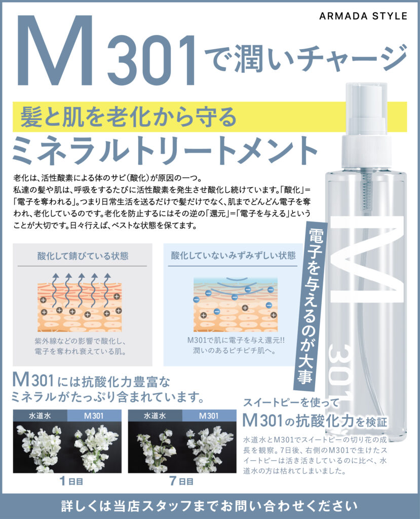 新しくお付き合いの始まるお客様が増えますと、今までの古くからご来店なさってるお客さんとのツーカーの関係と違って、改めて電子トリートメント・armada Mi+ 301のご...