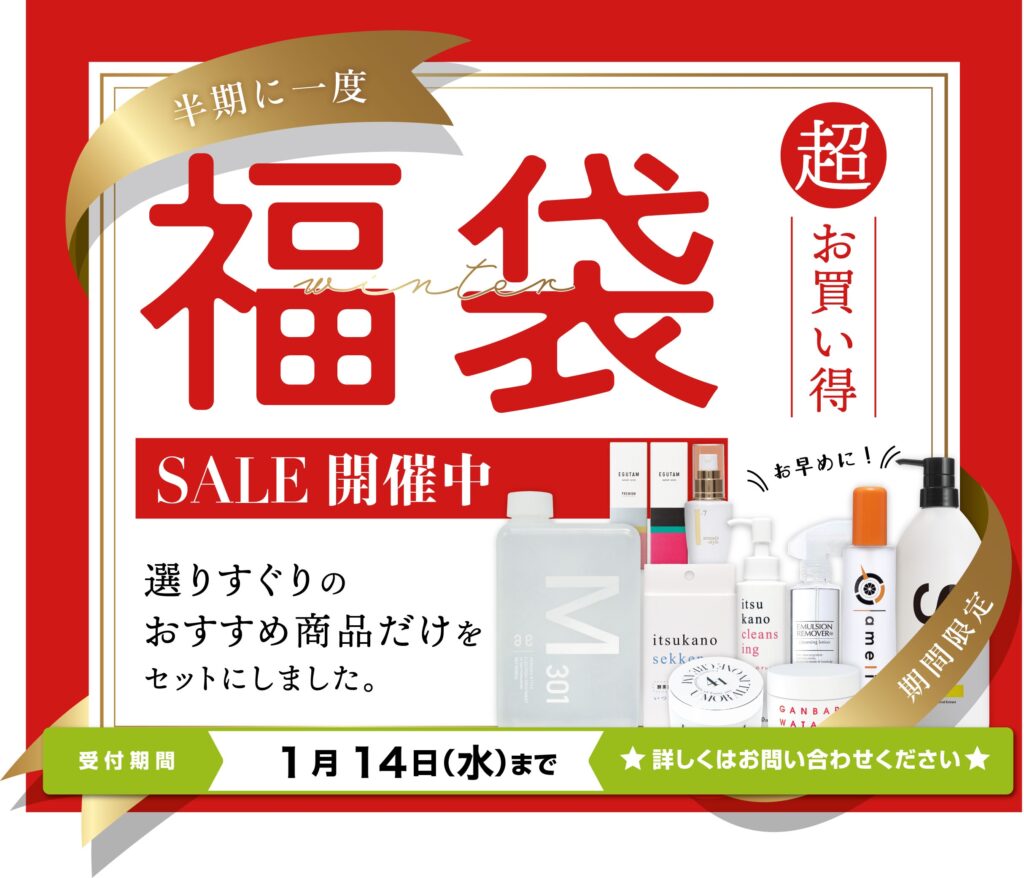 毎年、夏と冬に「福袋セール」を開催しております。11月〜1月/6月〜8月です。具体的な期間はお問い合わせください。全商品20%OFF